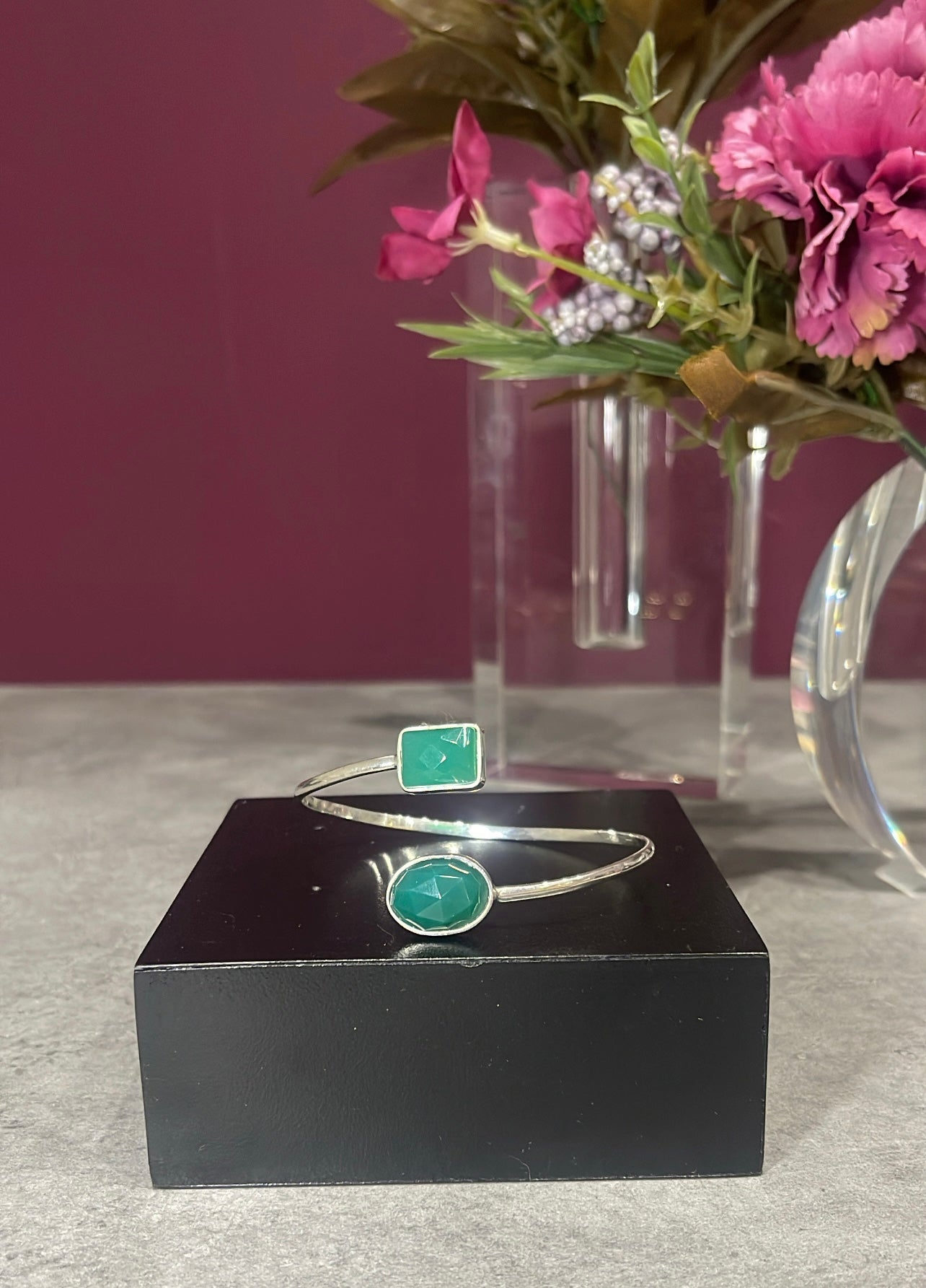 PIEZA ÚNICA, Brazalete hecho a mano en plata .925, con calcedonia verde natural