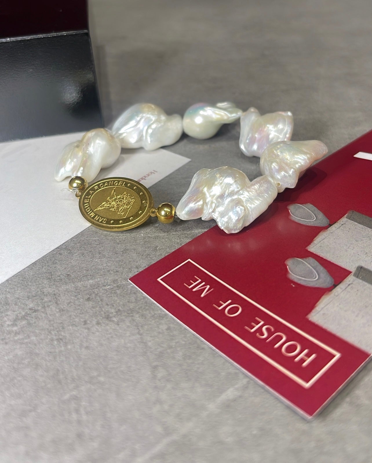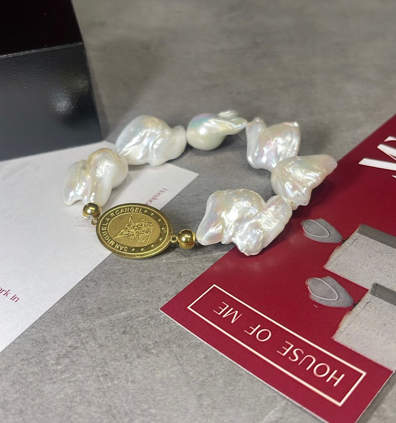Acero inoxidable con baño de oro y perlas barrocas