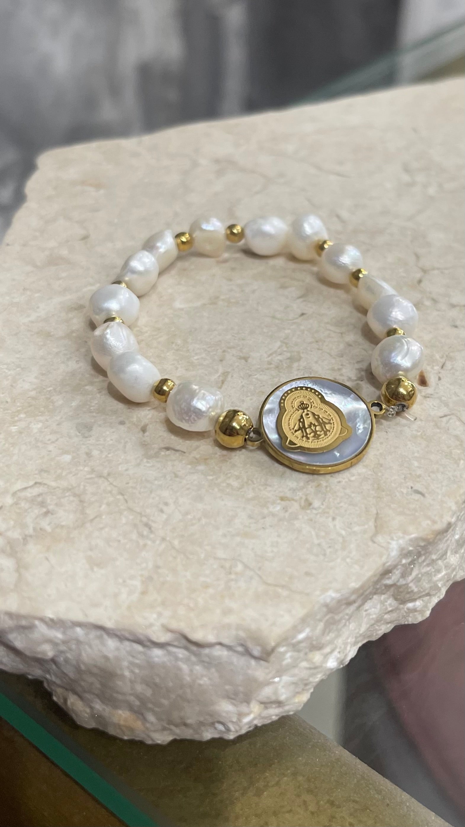 Acero inoxidable, medalla a virgen de Suyapa, con perlas freshwater